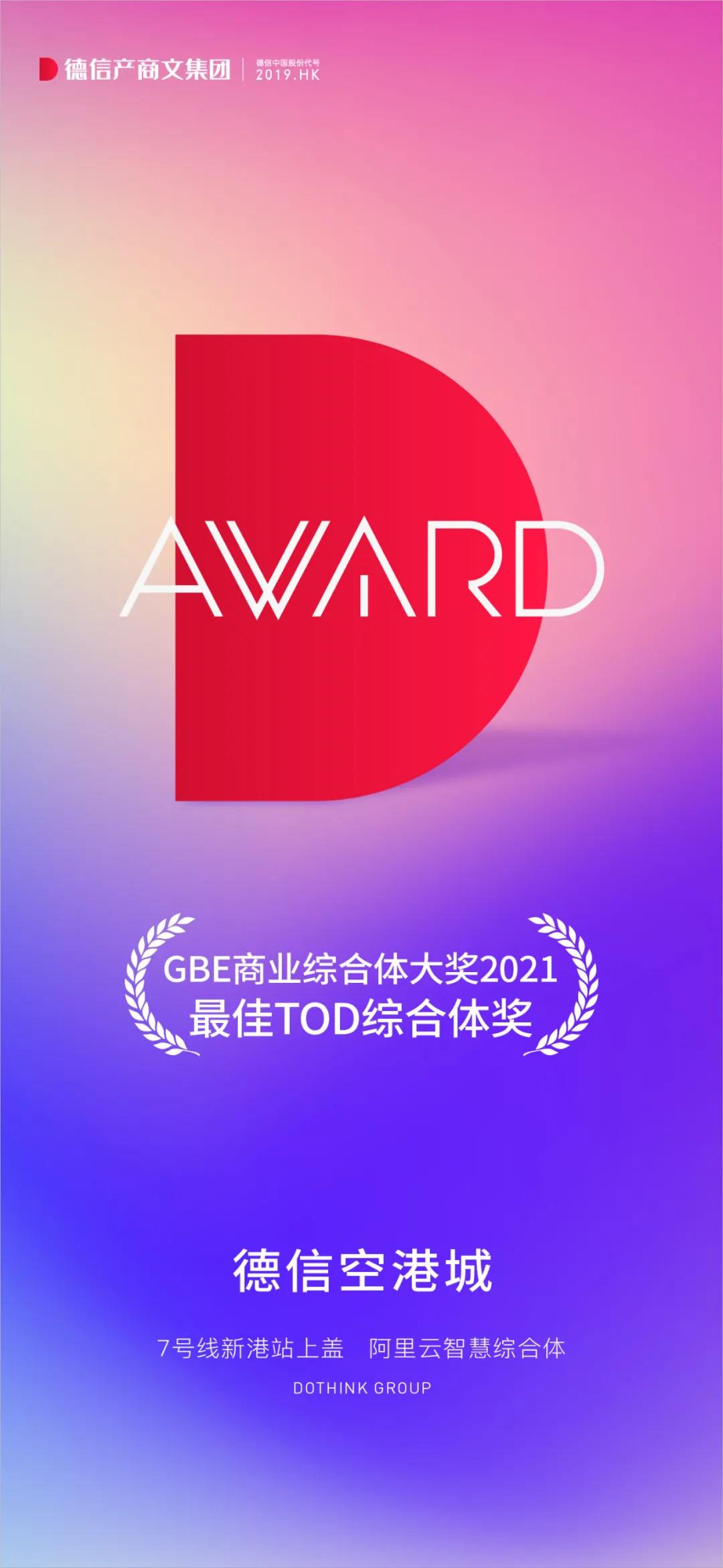2021年10月15日,由GBE建筑论坛发起的“GBE商业综合体大奖2021”颁奖盛典启幕。在众多主流媒体、行业精英的共同见证下,由德信产商文集团倾力打造的德信空港城摘得“最佳TOD综合体奖”。
