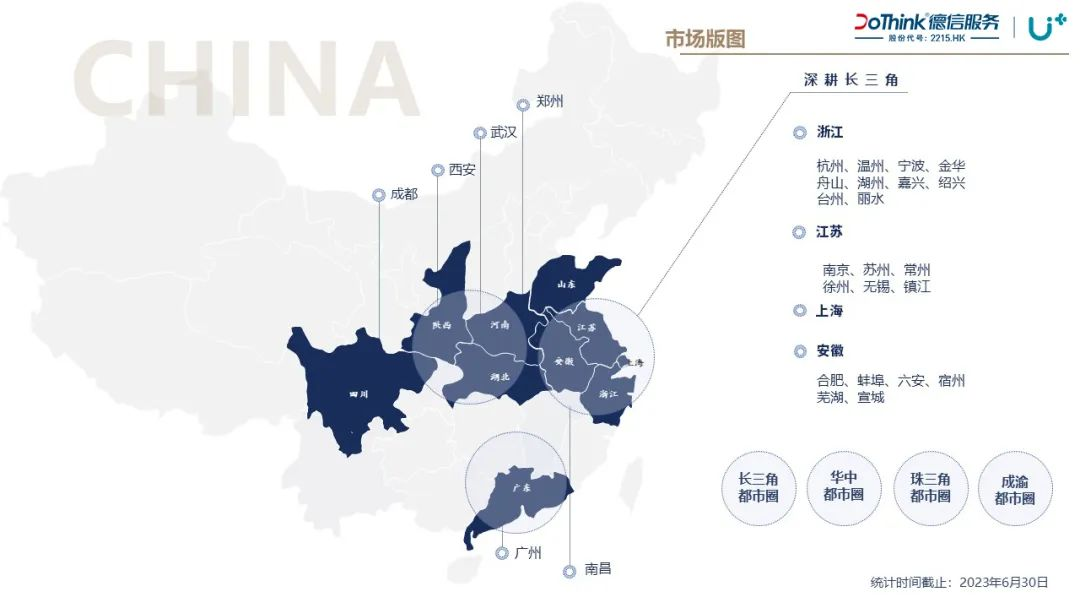 凭借极具优势的市场化拓展能力,德信服务已实现了深耕长三角,布局全国中心城市的发展格局,连续多年荣获“中国物业市场化运营领先品牌企业”,连续10年入选中国物业服务百强企业,最新排名第22位。